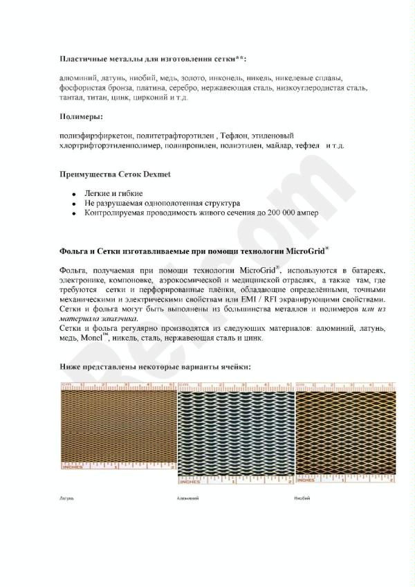 - Сетки DEXMET из металлов и полимеров